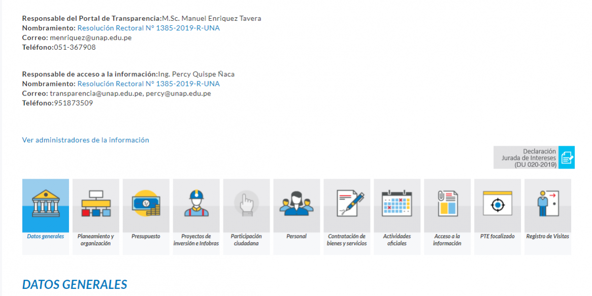 Asimismo, el PTE, es un canal digital en el que las entidades públicas difunden periódicamente información referida a los principales aspectos de su gestión. El acceso a esta información contribuye a promover la vigilancia ciudadana y el control social por parte de la ciudadanía, lo que posibilita la formación de una opinión libre e informada sobre la res pública, destacando a la UNA Puno dentro de las más de 40 universidades públicas a nivel nacional.